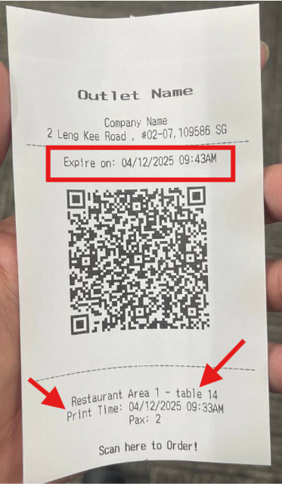 Printed dynamic QR will display the table name and time of printing