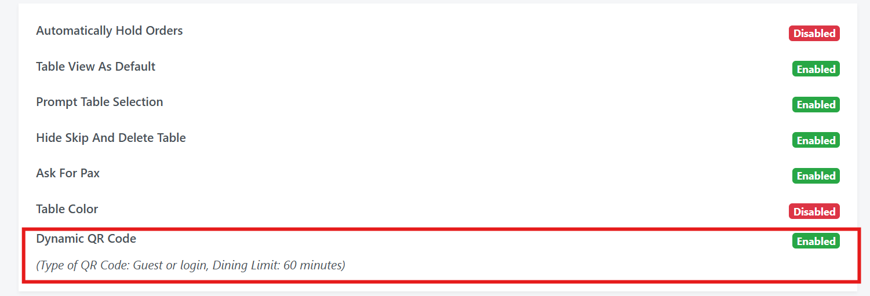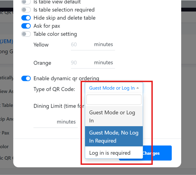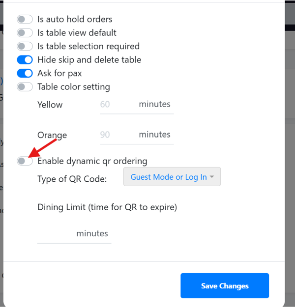 Toggle on “Enable dynamic qr ordering” and select type of QR code