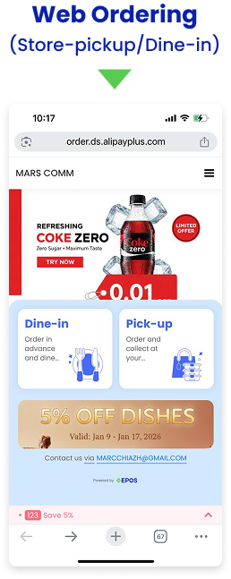EPOS360 BlueTap accepts debit/credit cards, QR payments, and e-wallets.