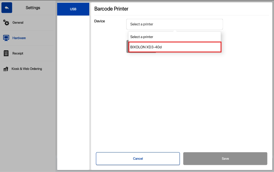 4. Select Add a new Printer under Barcode Printer to setup a new device.