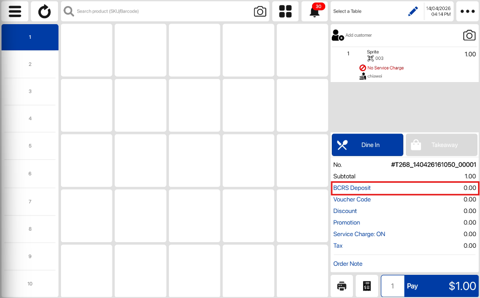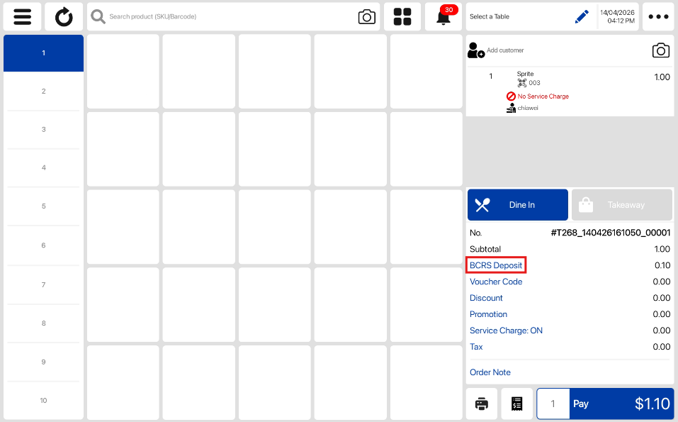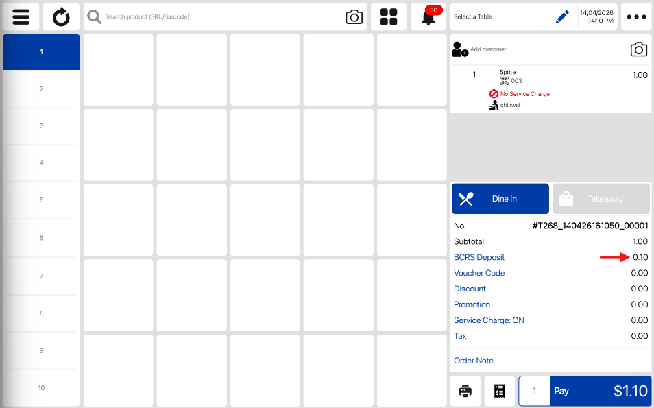 Once confirmed, the BCRS Deposit amount in the order summary will update to $0.00, and the deposit will be excluded from the transaction total.
