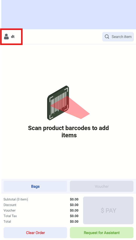 Customers must scan or enter their member details at the kiosk before proceeding to payment.