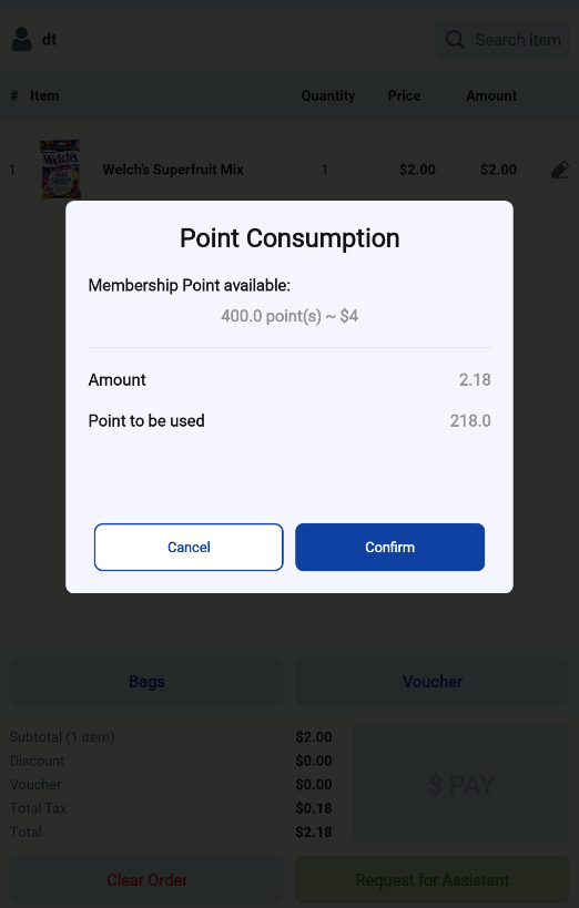 Once enabled, the Membership Points payment option will only appear when a customer is logged in as a member. If no member is logged in, this payment method will remain hidden from the payment screen.
