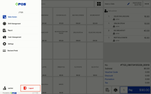 icon to enter the POS menu. After entering the POS menu, users can click on the Logout button.