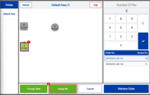 After clicking on the Merge Bill button, users can select the other table they would like to merge the bill with.