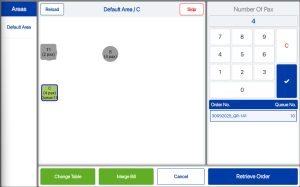 Users can select an area and table, key in the number of pax and click on the Take Order button.