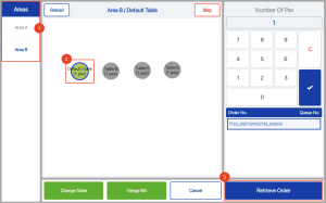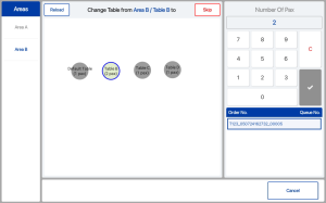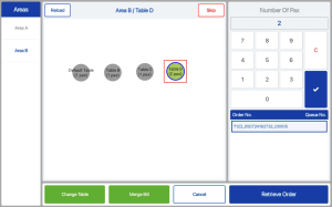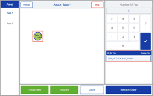 Users can select an area and table, key in the number of pax and click on the Take Order button.