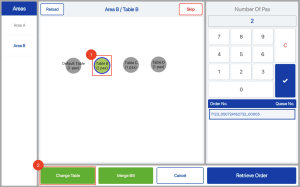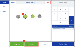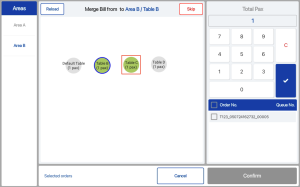 After clicking on the Merge Bill button, users can select the other table they would like to merge the bill with.