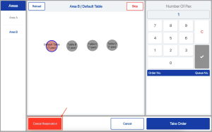 In the event that users would like to cancel a reservation, users can click on the table and click on the Cancel Reservation button.