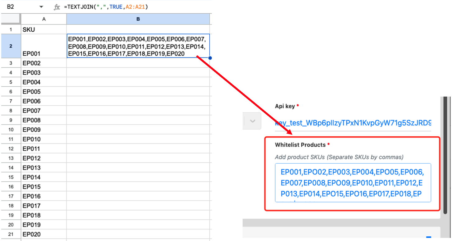 (4) Whitelist Products: pure texts of product SKUs separated by commas, only enter the product skus that are approved by NEA