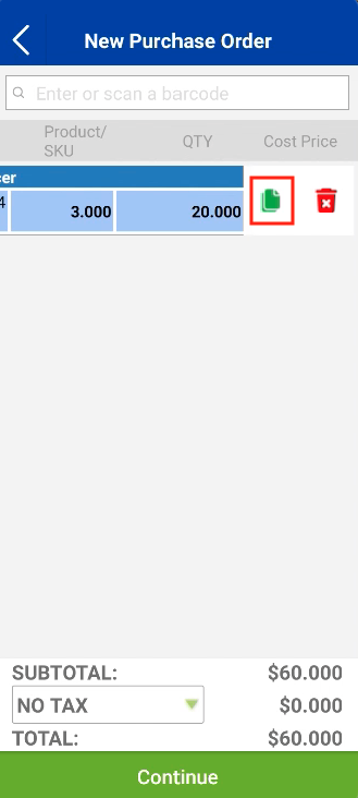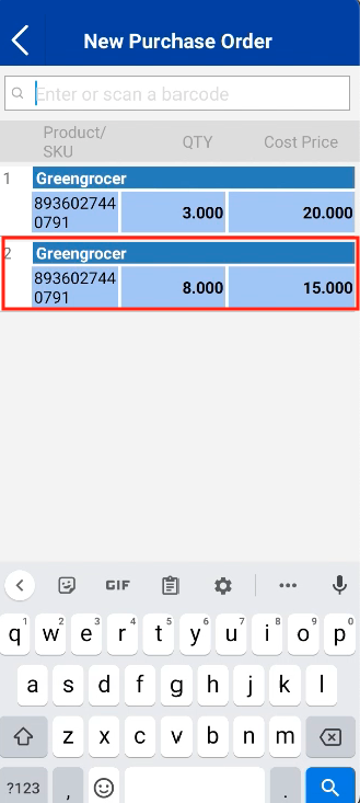 7. Users can utilise the duplicate button to capture the “free items” / same products with different cost prices from the supplier in the same purchase order.