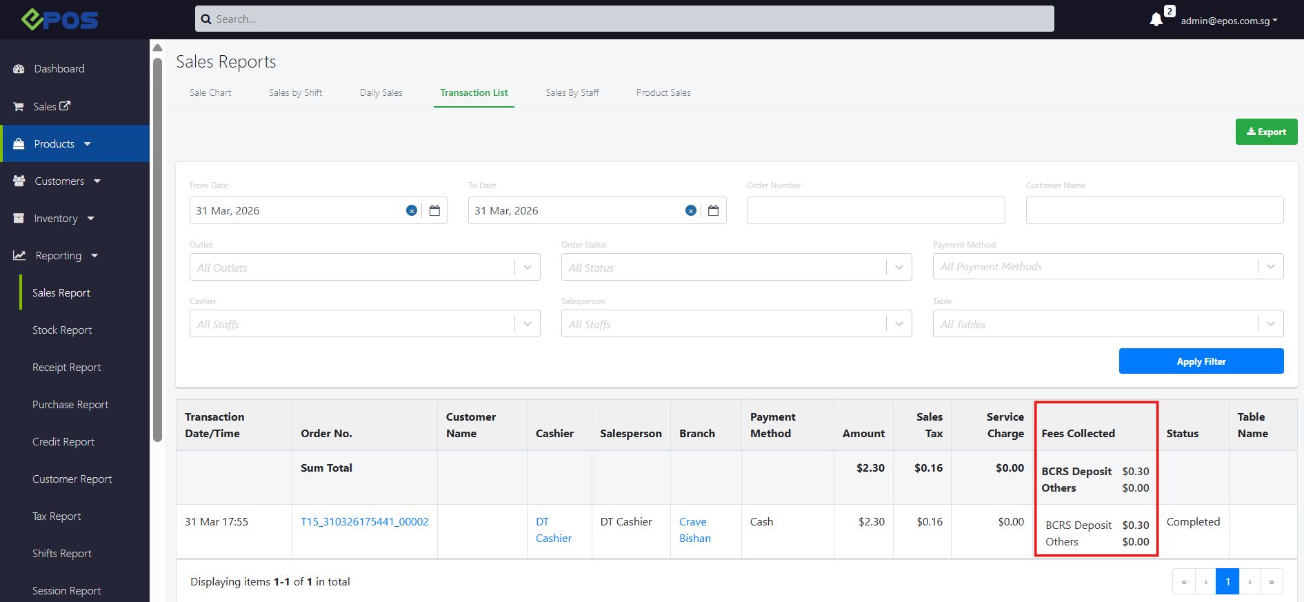 Allow users to filter and search the transaction list. Click on Apply Filter to generate a report.