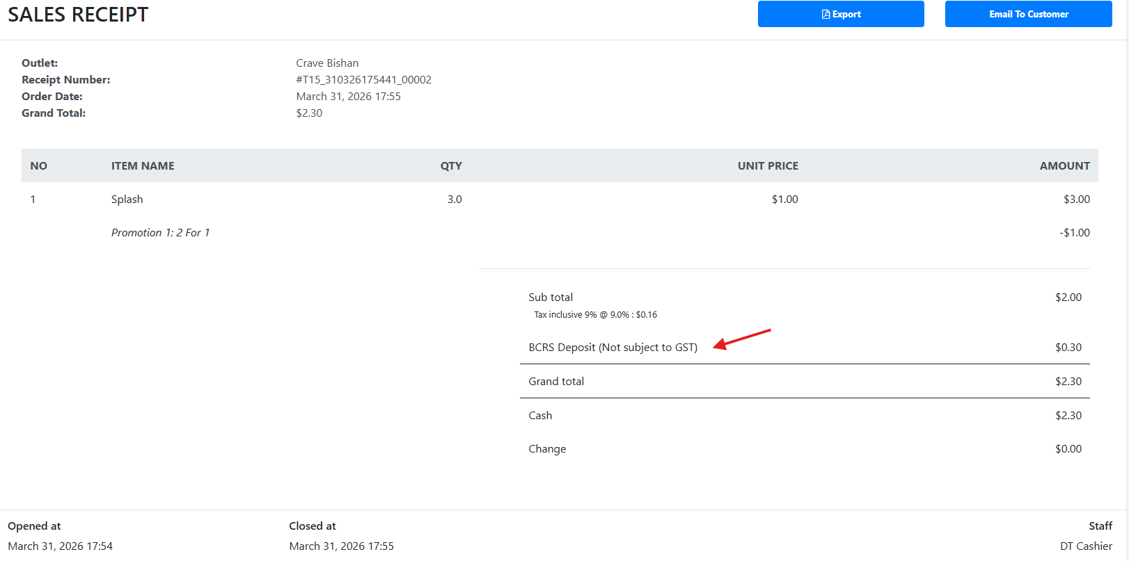 – The BCRS Deposit waiver details, if a waiver was applied at the point of sale (including the waiver reason).