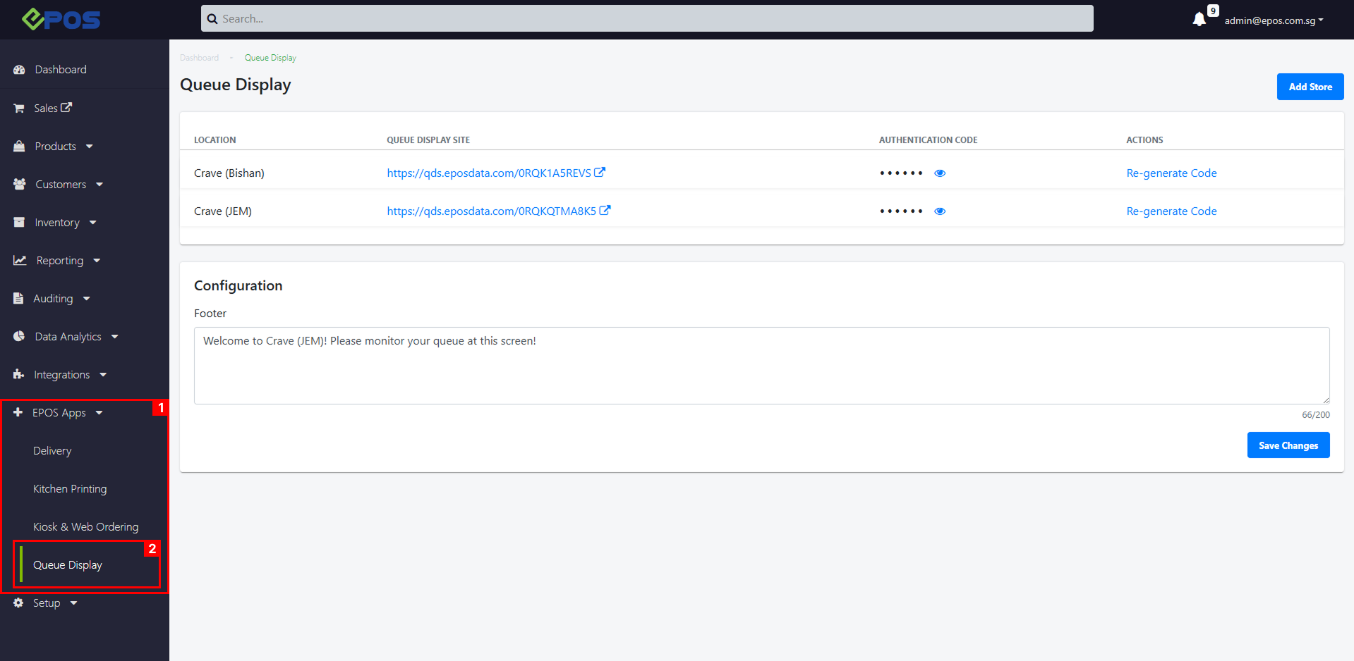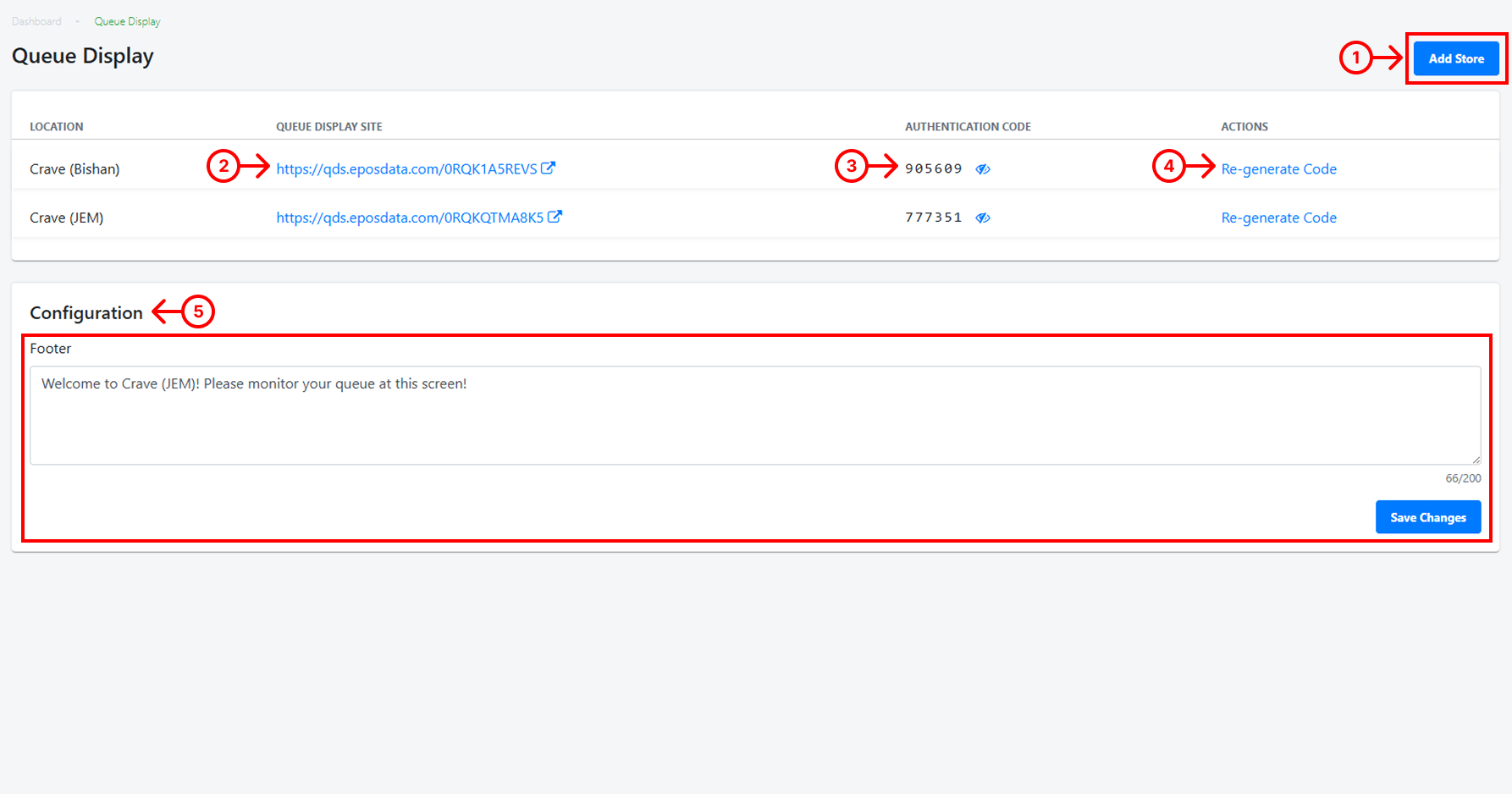 Allows users to “Re-generate code” if needed. Users would need to access the queue display with the new authentication code when the access resets.