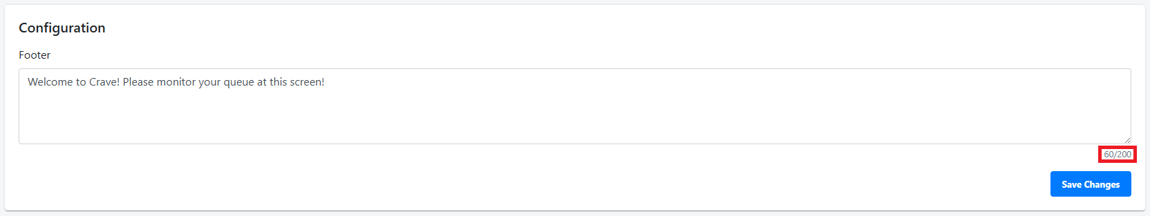 Users can adjust the footer text shown on the queue display using the text box as a preview.