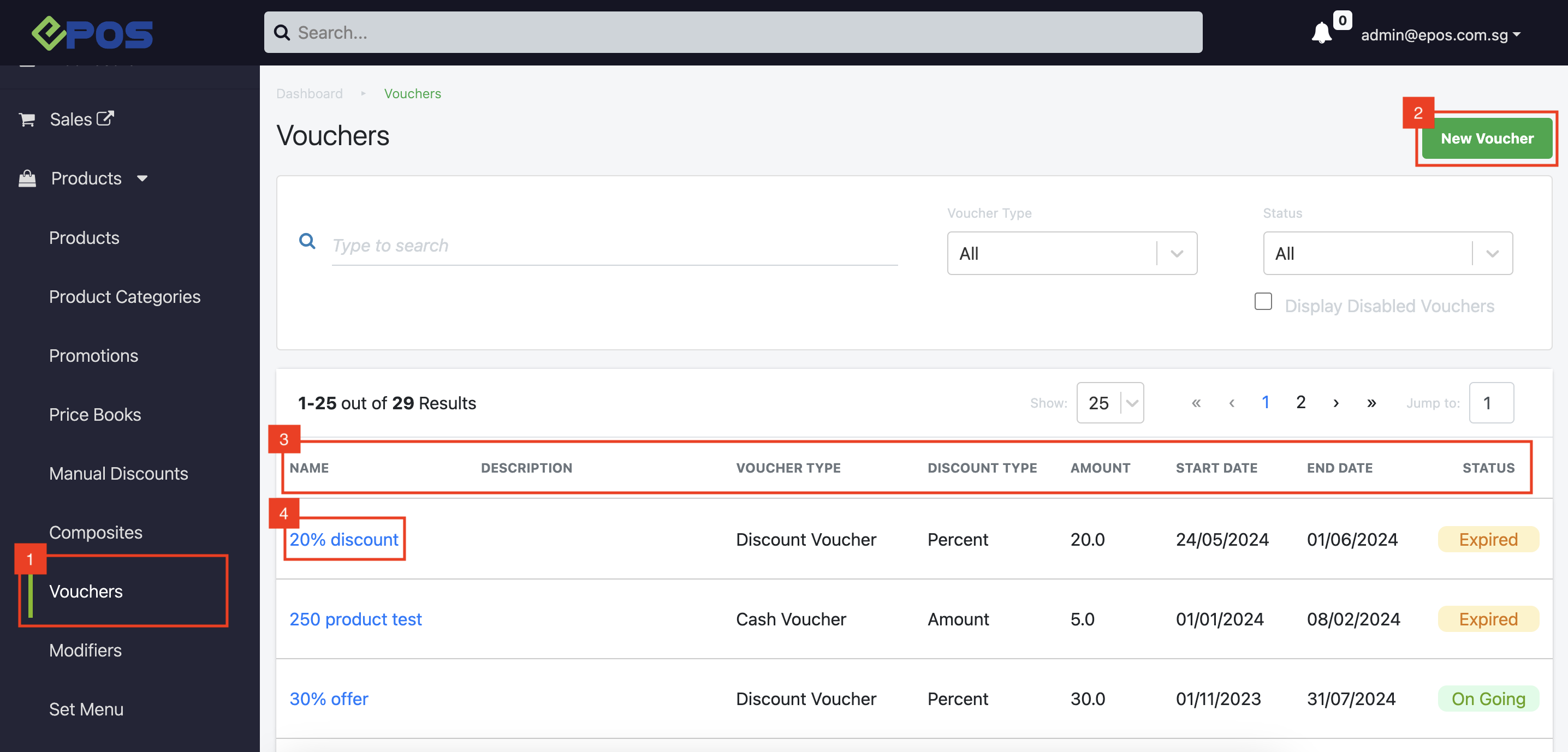 4. Voucher List Shows users the information on the used and unused vouchers. Users are also able to see the breakdown of each voucher number.