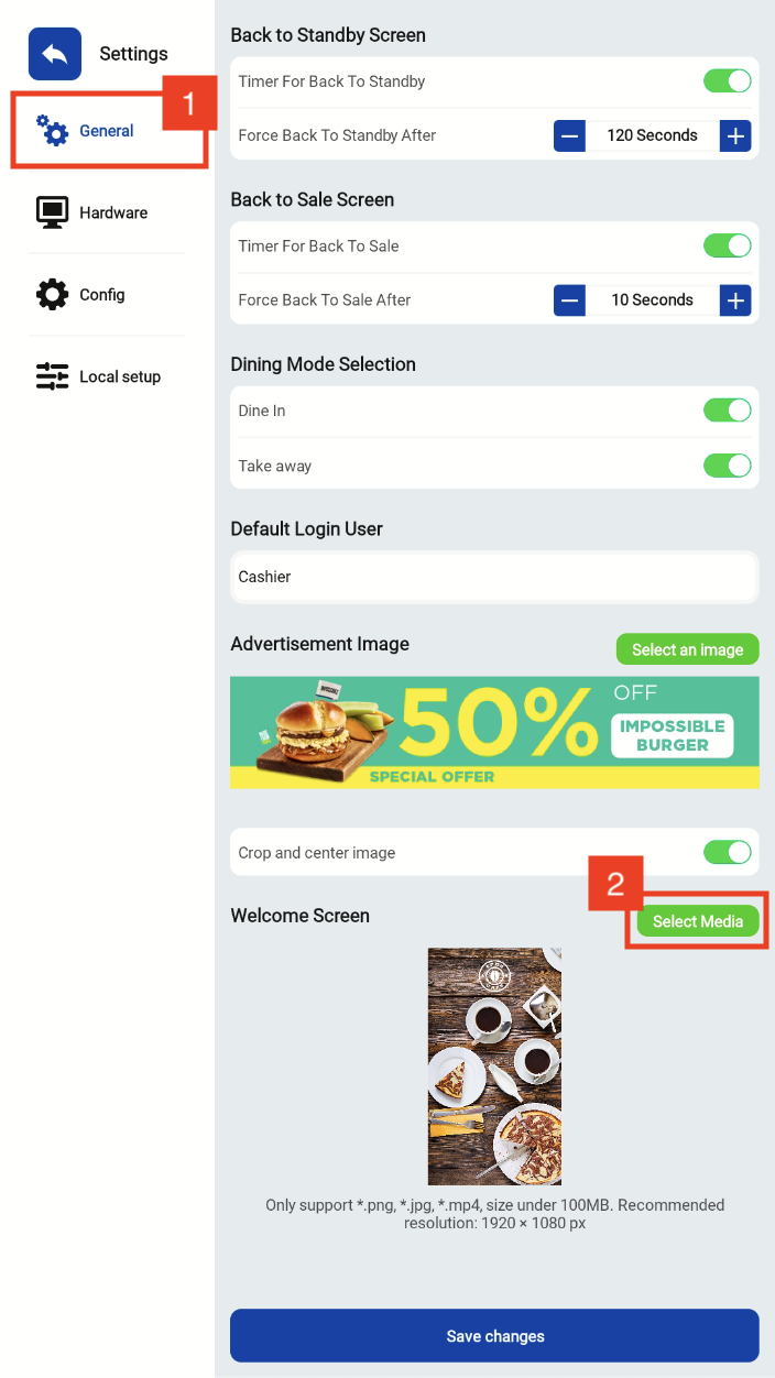 This would come in handy after customers started choosing or adding products to the cart but walked away without checking out. When this feature is enabled, the kiosk will automatically return the current screen to the sale screen after the specified period of time.