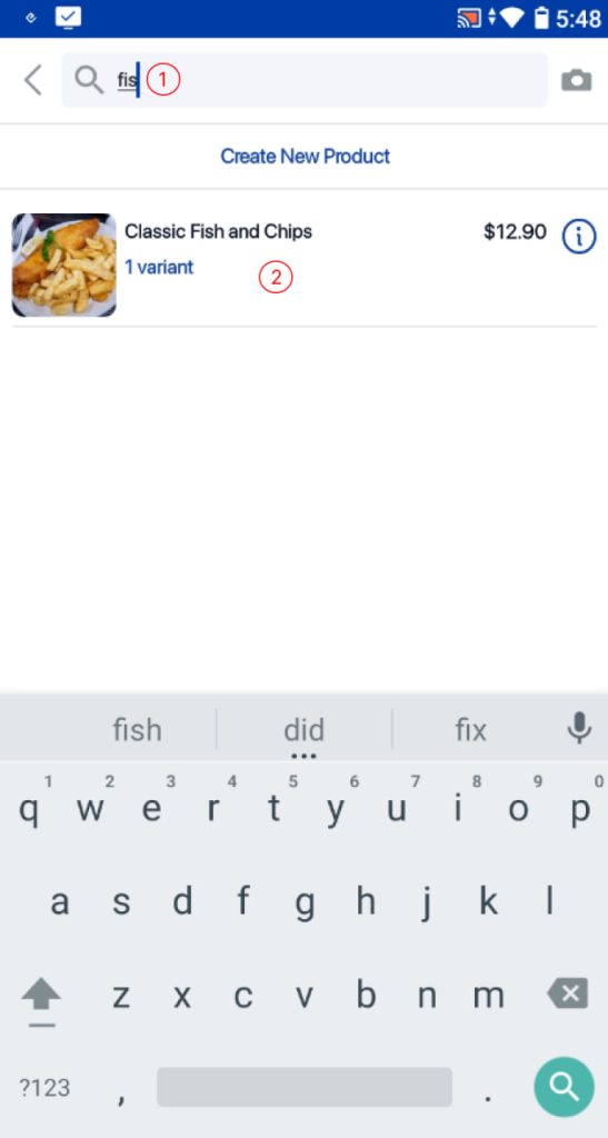 After that, users can search for the product using the product name/sku/barcode in the search bar and select the product. Users must key in at least 3 characters in order to trigger the search function.