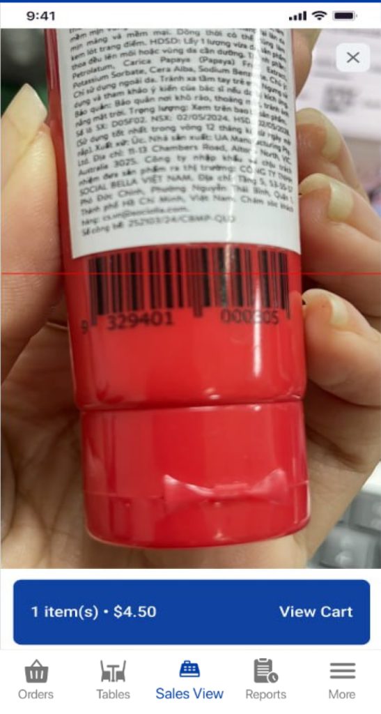 Once the barcode is scanned, the product will automatically be added into the order cart.