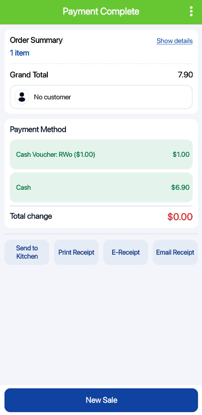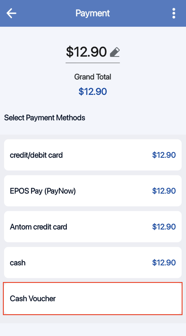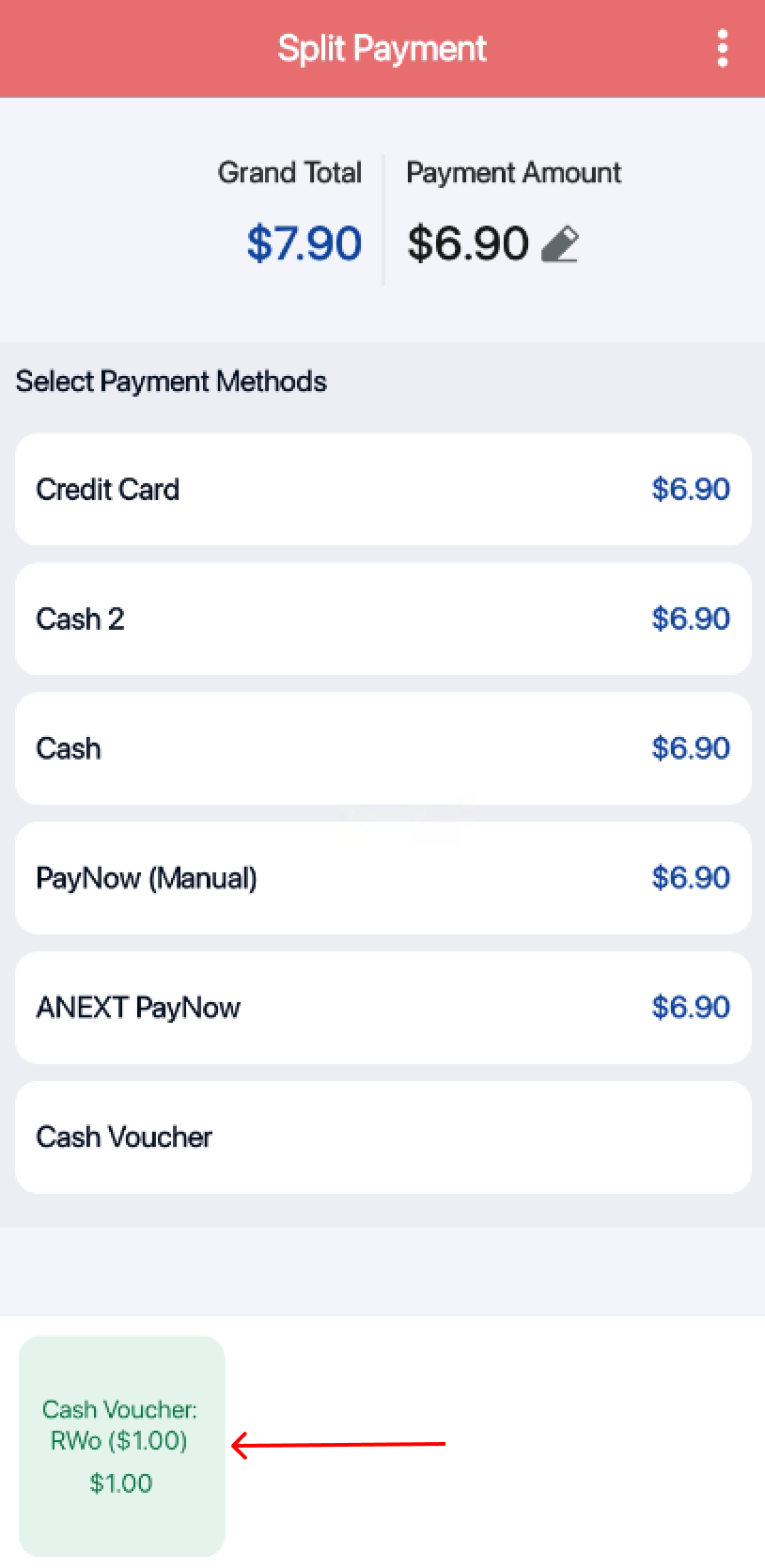 After adding items to the Order cart, users can click on the Pay button to get directed to the payment page. Users can select the Cash Voucher payment method.