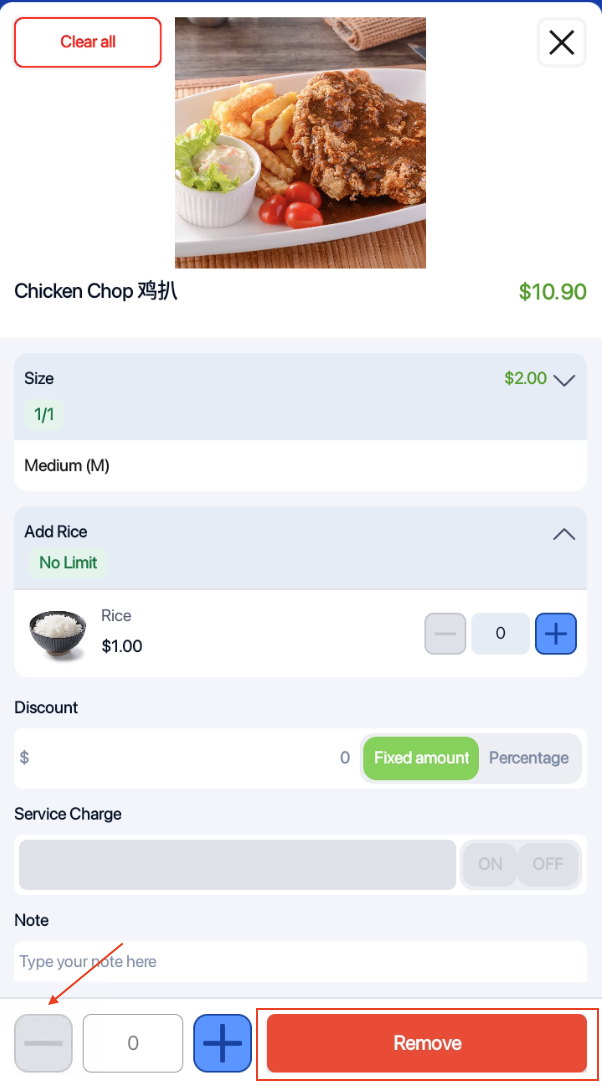 At the product details window, users can click on add or minus buttons to adjust the quantity.