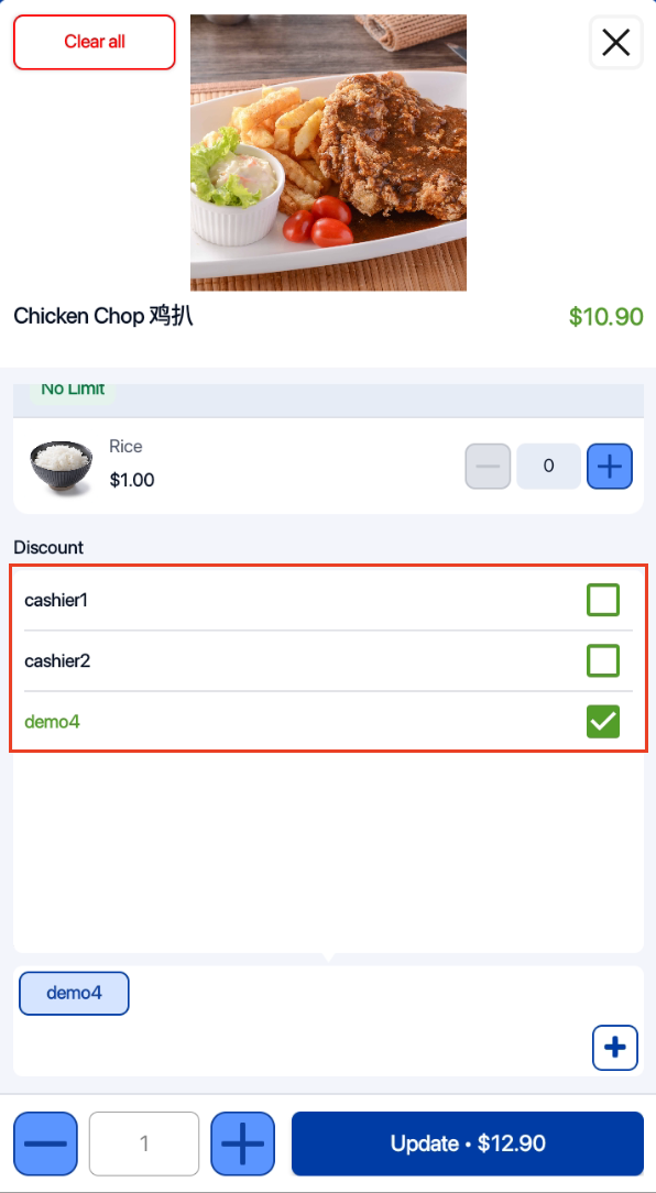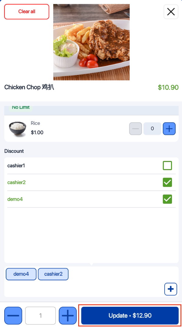 Users can click on the product multiple times to add multiple quantities of a product. Eg: click 2 times, 2 units will be added to the order cart.