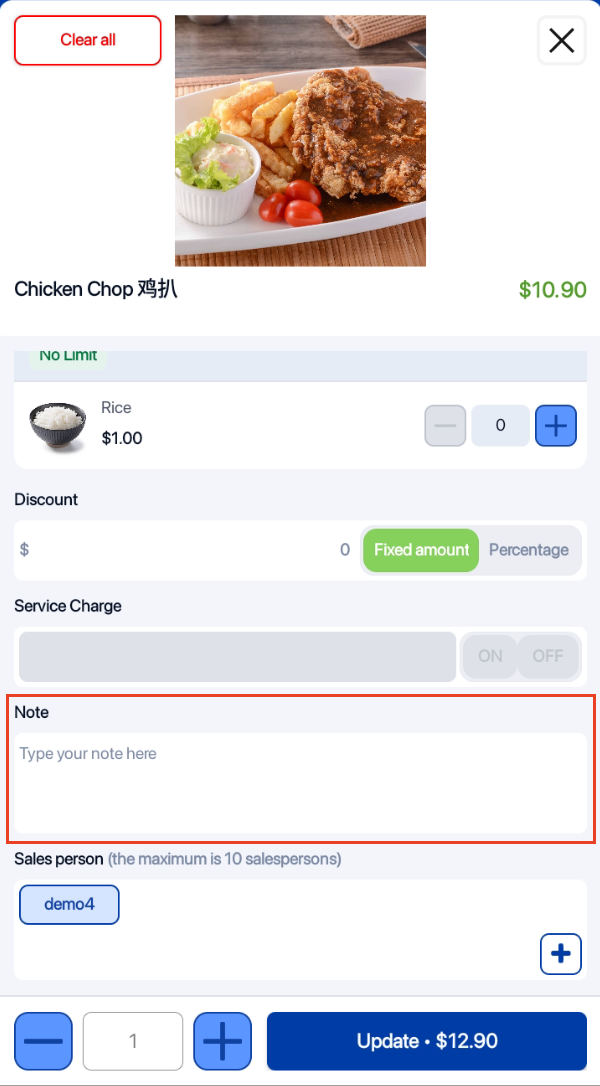 There are three options for users to update the quantity of a product added to the order cart. Updating the product quantity in the order cart will be recorded in the backend portal as part of Order Audit.