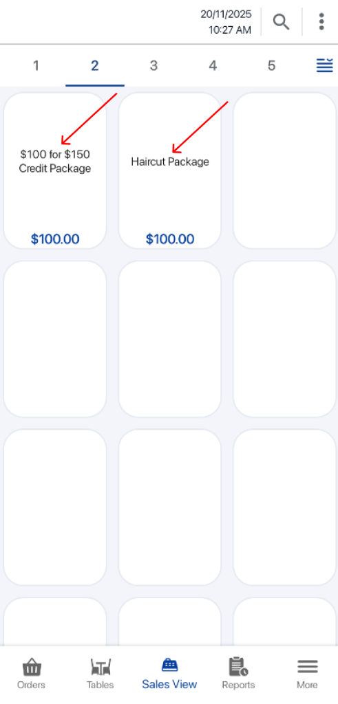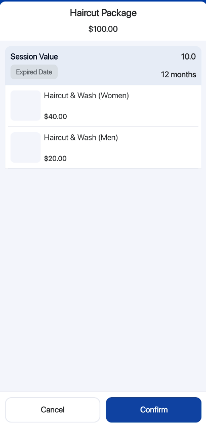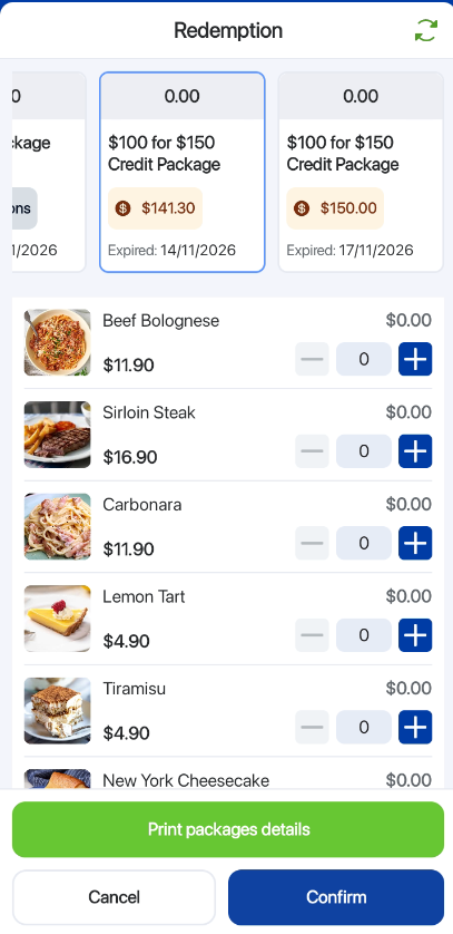 From the Customer Details popup, tap on Redeem Package to view all packages associated with the customer.