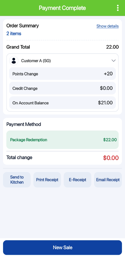 Once users validate and redeem the selected items, they will be redirected to the Payment Complete page — unless there is an outstanding amount to be paid.