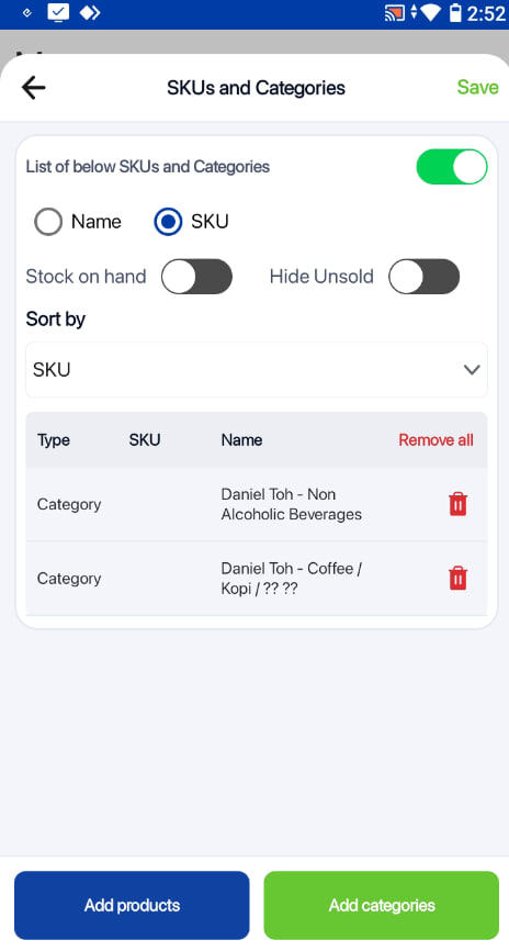 ☑️ Hide Unsold – Product/Category unsold for the shift will be hidden