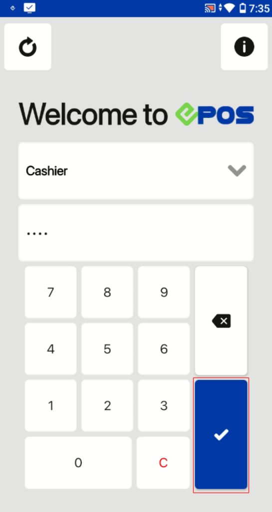 Upon inserting user’s login information, users can click on the Tick button to login.