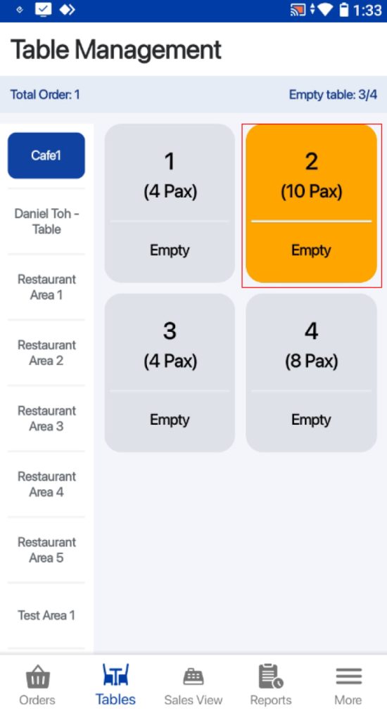 The tagged table will be displayed on the sales screen.