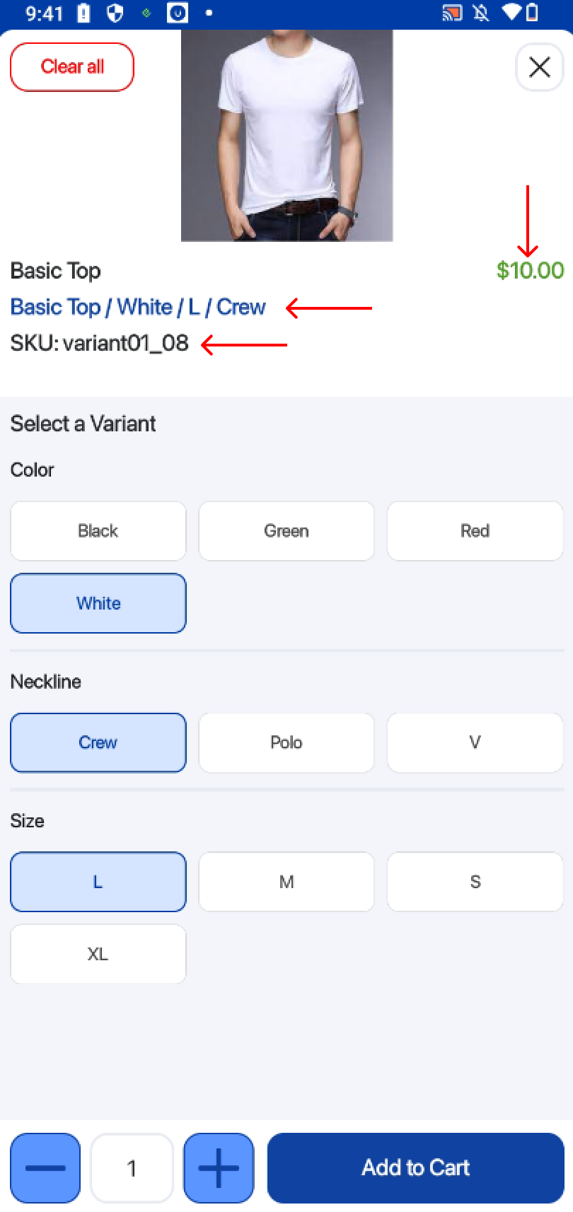 After the user selects their desired variant, the product information will automatically refresh to show the correct price, SKU, and details for that specific variant.