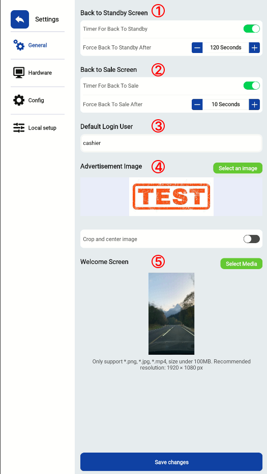 4. You can upload an advertisement image to display during idle times.
