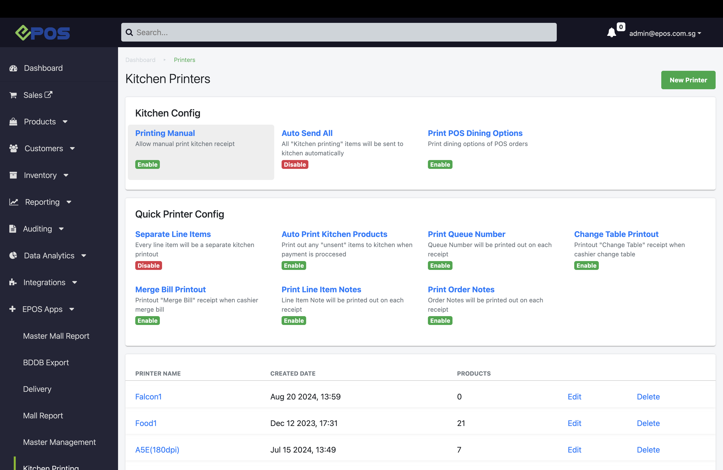 1. In the EPOS Backend, go to the EPOS Apps tab, select the “Kitchen Printers” module, and enable “Print POS Dining Options.”