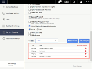 (d) Click on Add Products/Add Category to add into settlement printout.