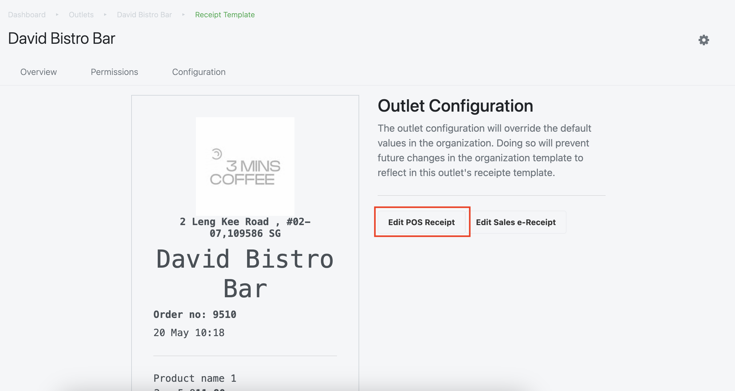 After accessing the Receipt Template page, users can click on Edit POS Receipt.