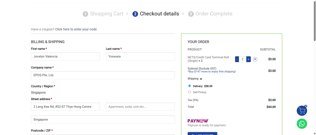 Once the customer successfully logged in, the user will be redirect to the WooCommerce checkout page with their information auto-filled with EPOS customer data.