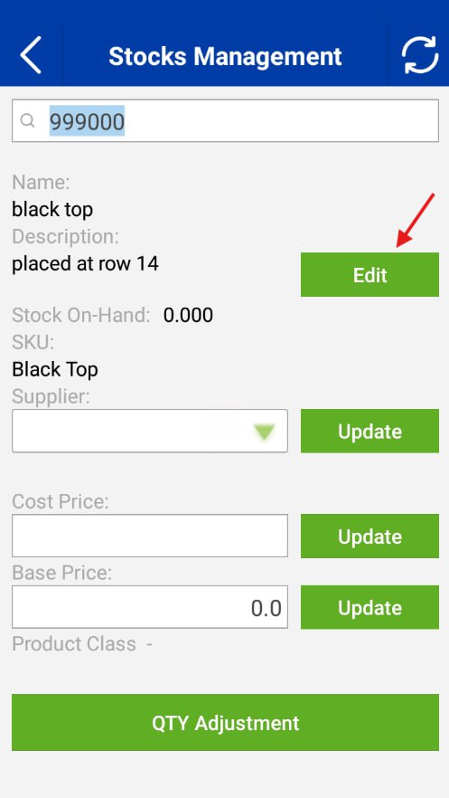 The UPDATE button beside the product description field can now send new edits of the product description to the backend and is reflected on the stock take device.