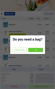 The kiosk will automatically prompt the user to purchase a plastic bag if the system detects they are completing a transaction without one.