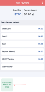 NOTE: For vouchers that cover only a partial amount of the transaction, the POS will automatically direct you to the split payment screen, allowing the customer to pay the remaining balance using another method.