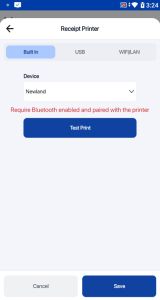 The built-in printer on Newland N950S & N950 devices is now integrated via Bluetooth. Users must ensure the device’s Bluetooth is turned on for the printer to connect and function successfully.