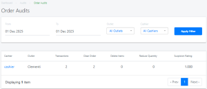 Merchants can easily view and track staff activities performed at the kiosk (e.g., Transactions, Clear Orders, Delete Items, Reduce Quantity) directly in the backend portal for auditing and security purposes.