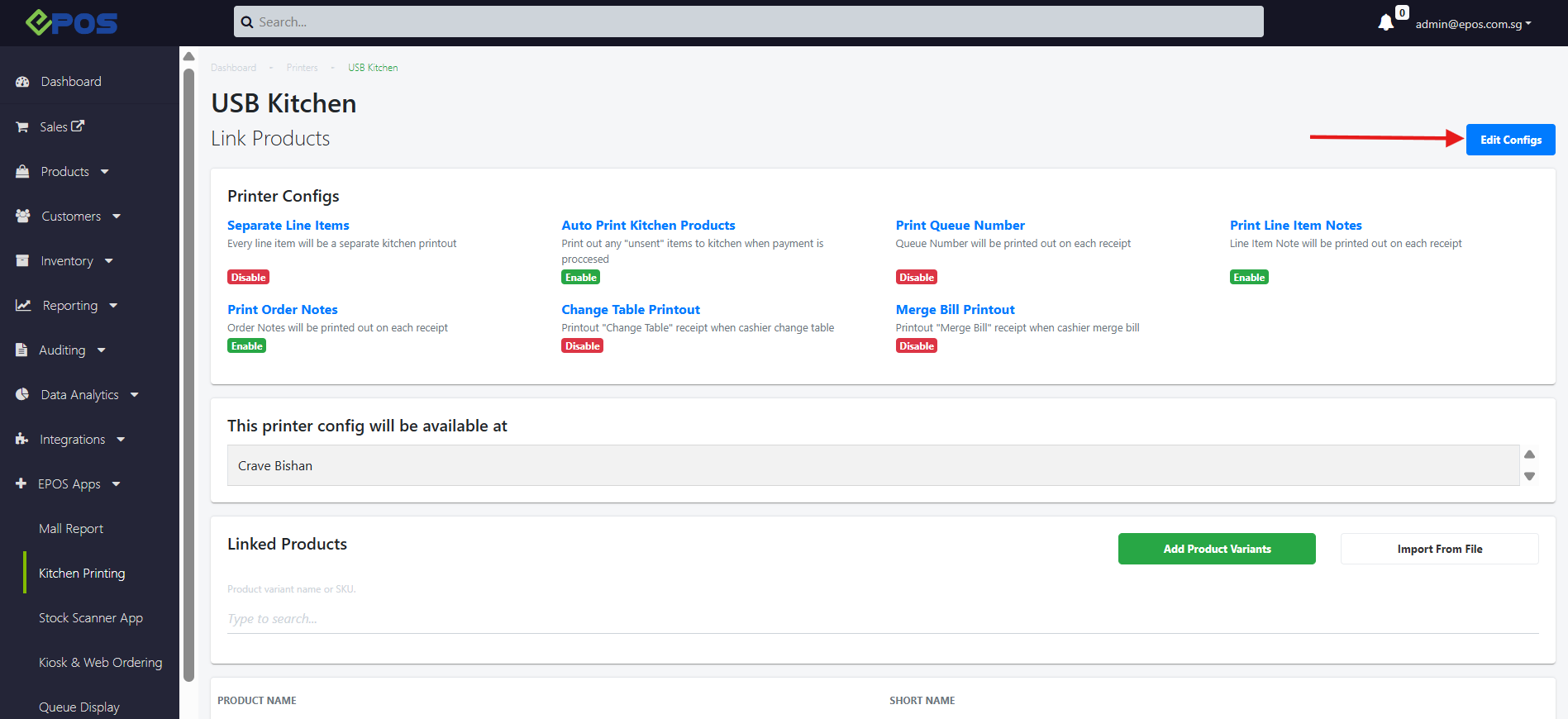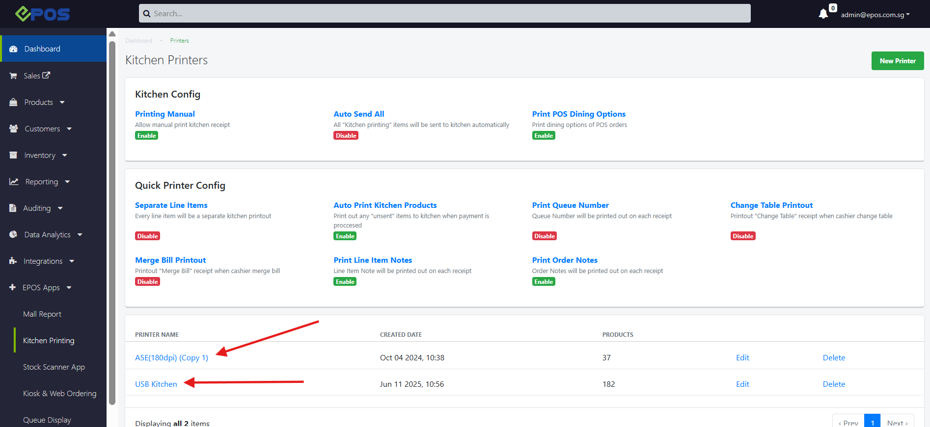 Navigate to Backend Portal > EPOS Apps > Kitchen Printing and select the kitchen printer you have set up.