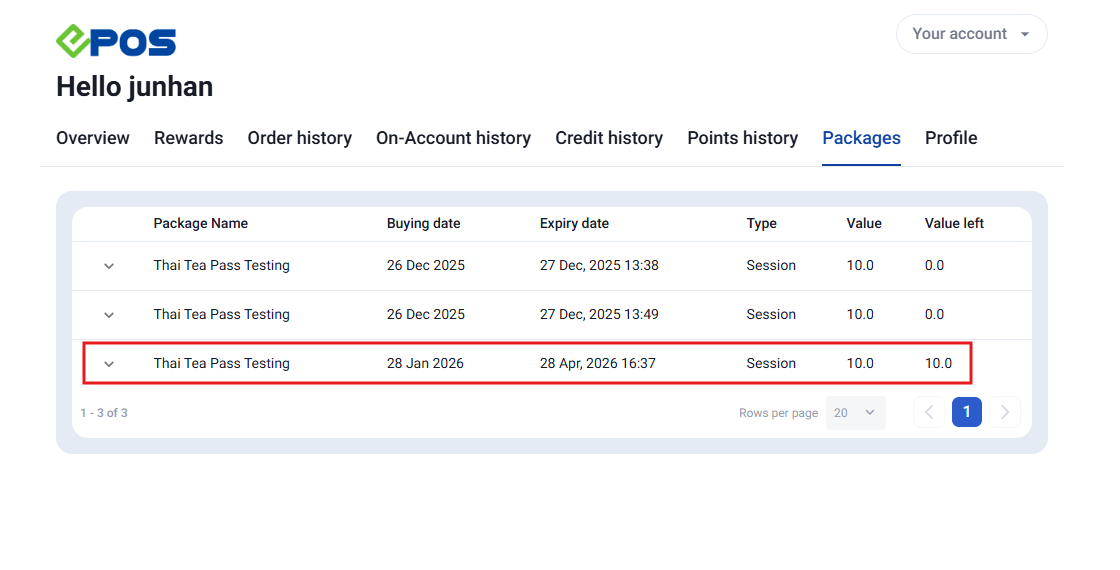 - Packages bought online can now auto-sync to the customer’s account on the EPOS Backend.