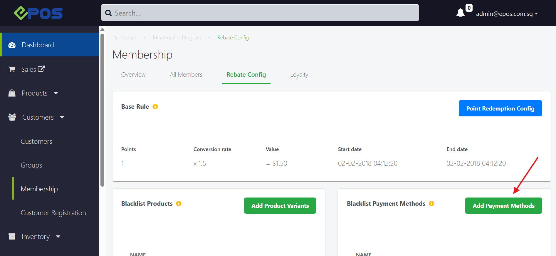 1. Merchants can go to their backend (Customers > Memberships > Rebate Config) and configure which payment method they wish to blacklist