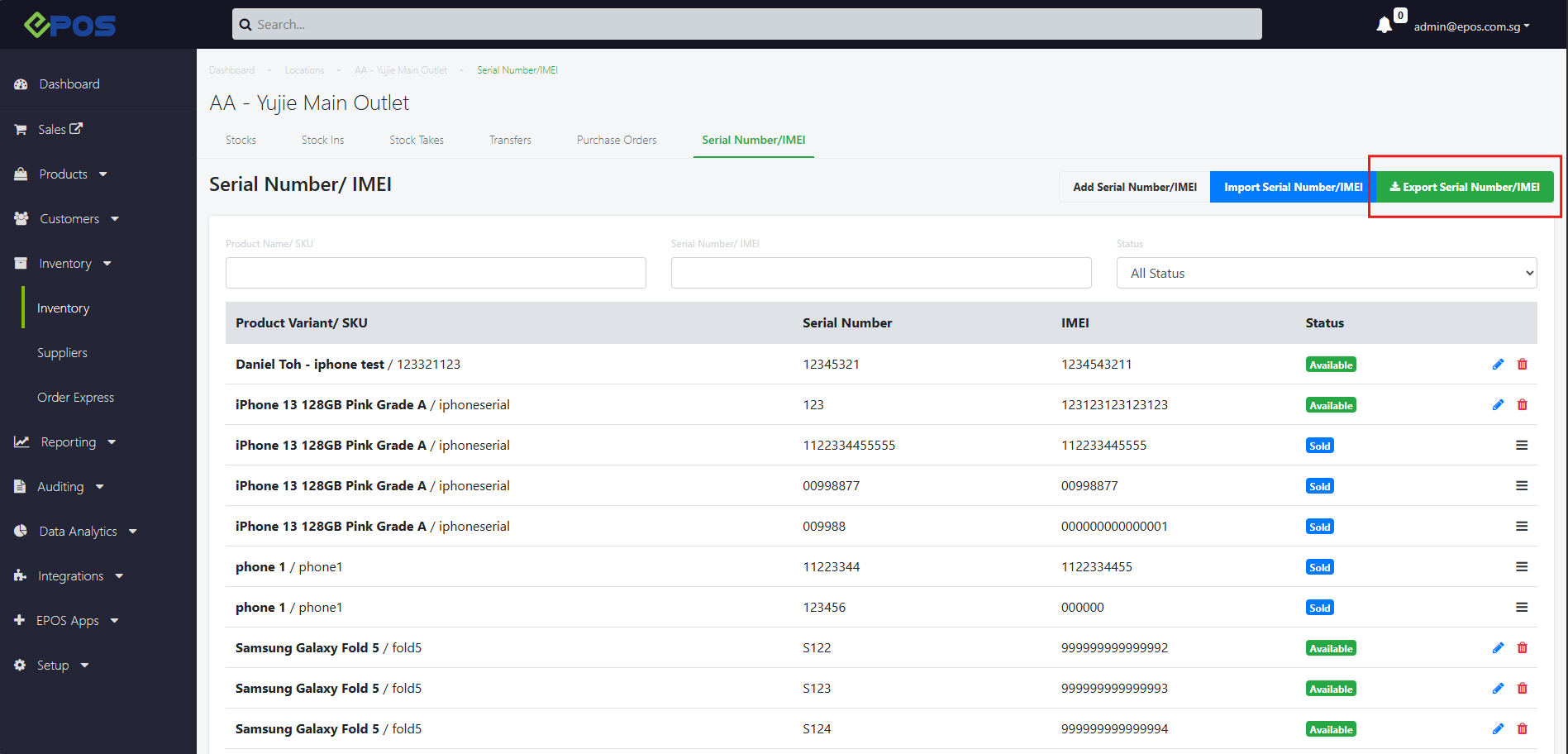 Serial Number/IMEI under Inventory can now be exported into a .csv file