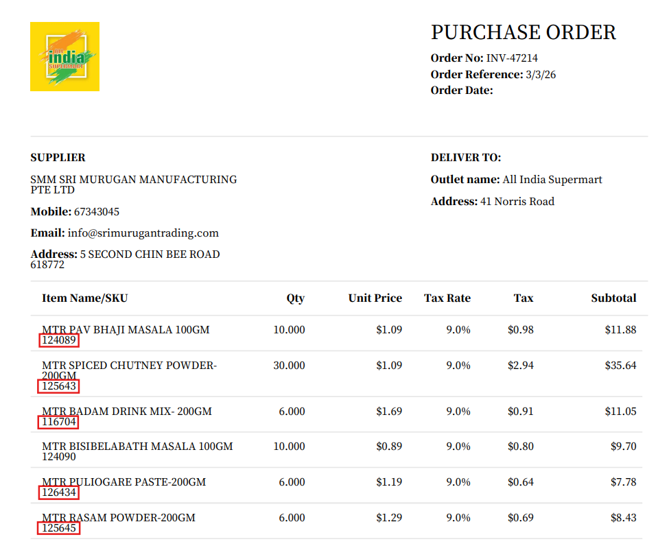 - Users can now see SKU of each ordered items below the product name on the exported PDF of their Purchase Order.