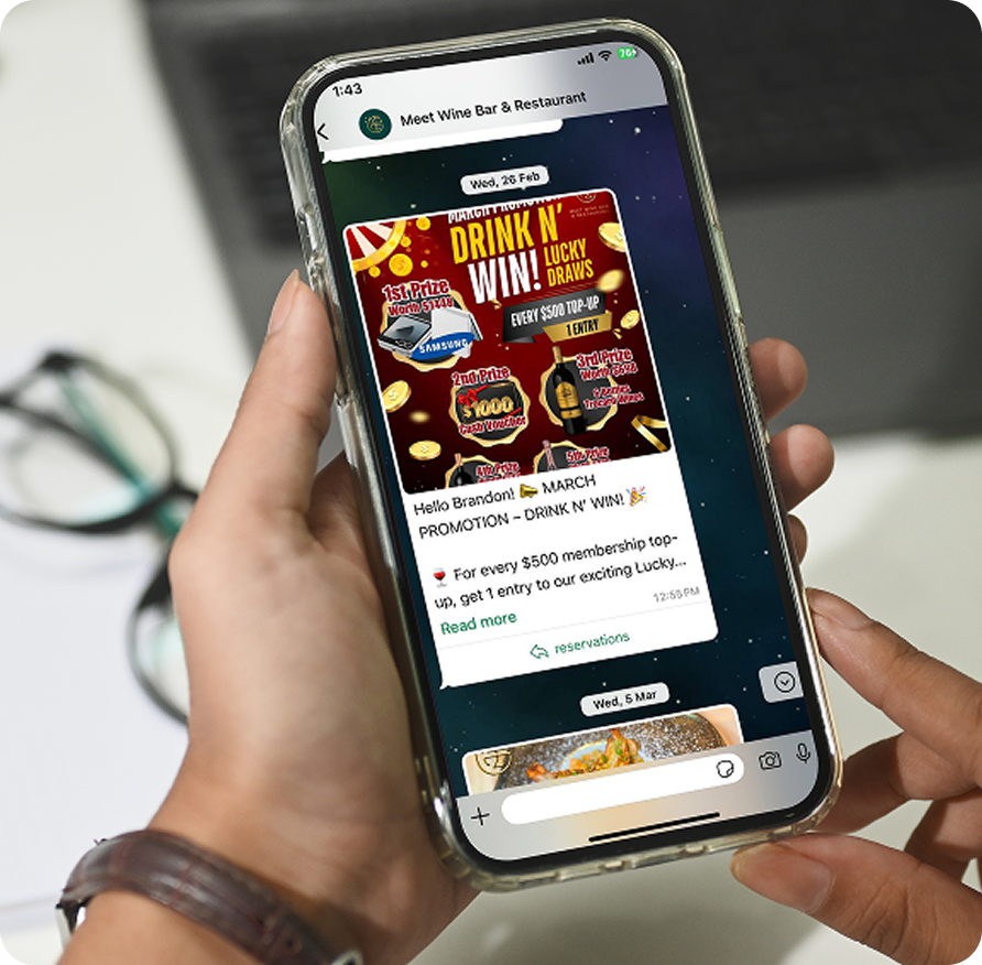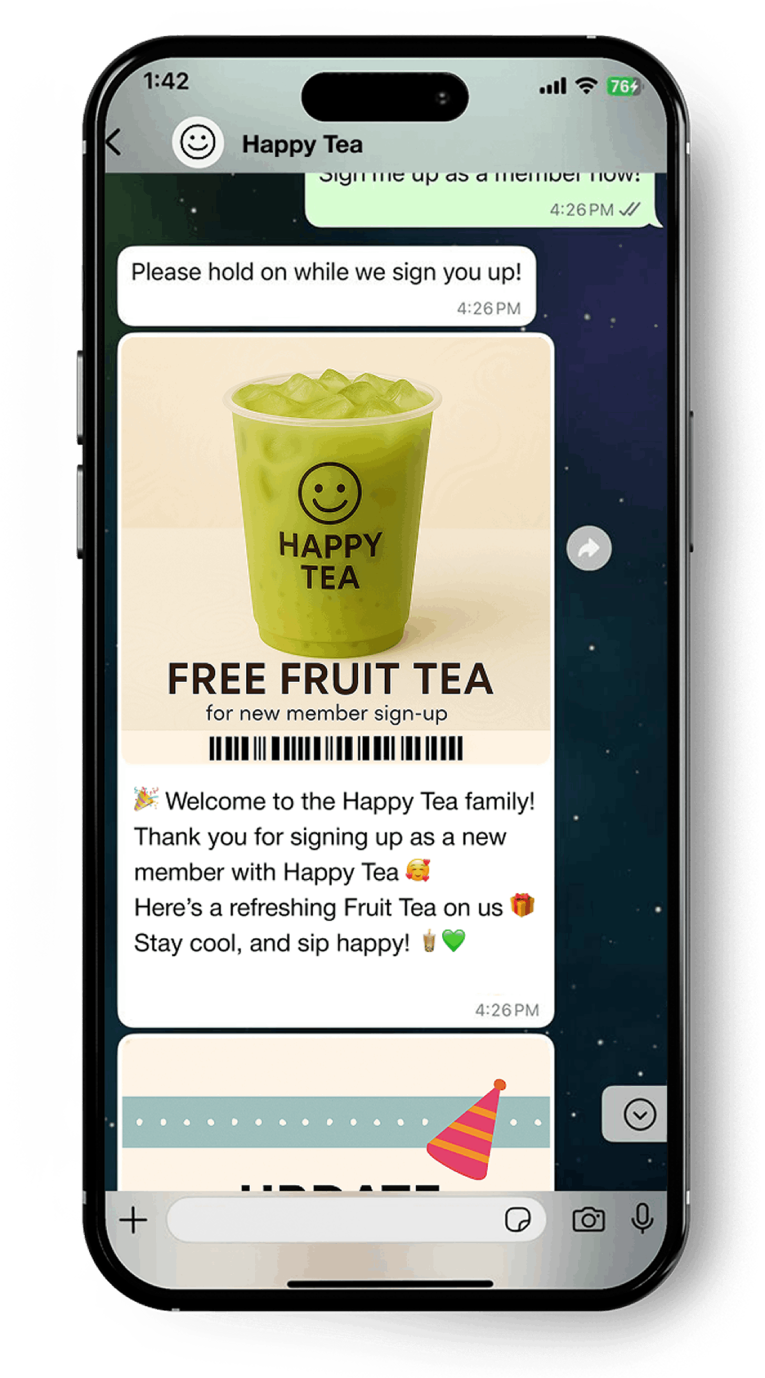 Let customers join your loyalty programme instantly on WhatsApp without tedious form filling.